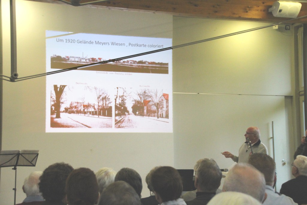 Zur Vorgeschichte des Gliesmaroder Bades präsentierte der Stadtteilheimatpfleger Hans-Jürgen Möhle zunächst eine Reihe von Fotos, Postkartenansichten und Skizzen. Schon seit Mitte der 1950er Jahre hatten sich Bürger aus Gliesmarode und angrenzenden Stadtteilen für ein Bad auf „Meyers Wiesen“ eingesetzt. 1964 kaufte die Stadt das Grundstück. Drei Badprojekte scheiterten (1957, 1964 und 1972), bis es dann endlich 1977 so weit war und der Rat der Stadt Braunschweig beschloss, dort ein „Gartenhallenbad mit hohem Freizeitwert“ zu bauen.