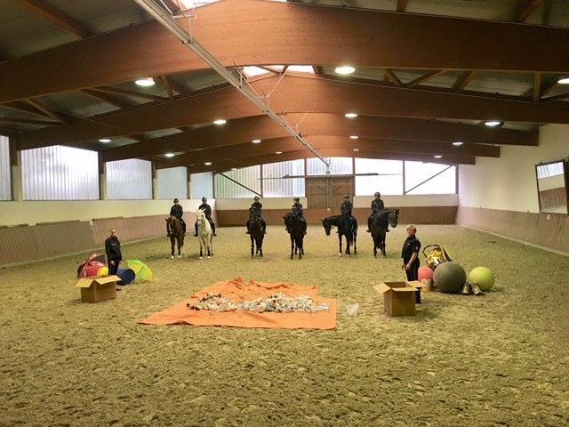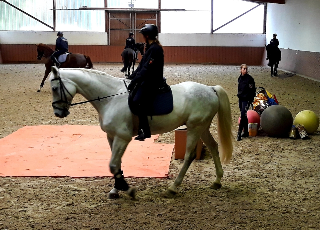 Ein anderes Beispiel: Oft liegen viele Plastikflaschen auf der Erde, die gegen die Pferdebeine stoßen. Wie wurde die Situation geübt?