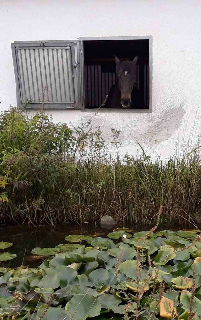denn das Pferd ging hinterher. Beim 2. Versuch musste wieder ein alter Hase vorweg. Beim 3.Versuch blieb das Pferd erst stehen, dann ging es ganz vorsichtig durch die Flaschen – geschafft!