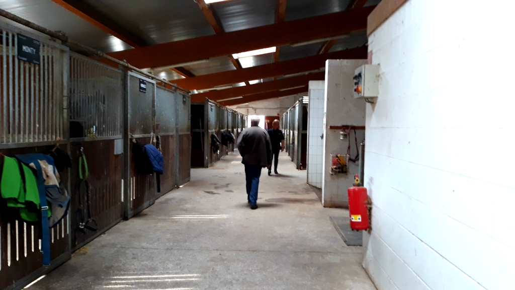 So vorbereitet gingen wir in die Reithalle, in der mehrere Pferde geritten wurden. Es wurde uns gezeigt, wie Pferde daran gewöhnt werden, dass etwas Stoffartiges um die Köpfe streift und sogar die Sicht nimmt. Da kommt es viel auf das Vertrauen zum Reiter an.